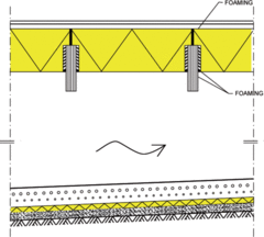 Vienu metu įrengiama šilumos, vėjo, garų izoliacija, laikančioji konstrukcija ir klojinys betono liejimui. Konstrukcija su FI-K600 210mm.
