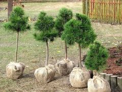 Augalai skiriasi aukštumu, karūnos apimtimi, kamieno storiu bet galima parinkti ir daug maž panašius į save medelius. Patalpintoje nuotraukoje pušies aukštis apie 120 cm.