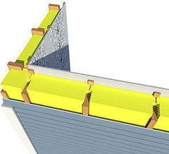 Vienu metu įrengiama šilumos izoliacija, garų izoliacija ir apsauga nuo vėjo.