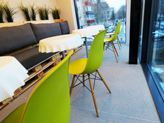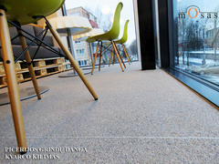 Ką tik Kaune, V. Krėvės pr. 72a duris pravėrė picerija „Pizza Express", kuriose grindys, su mūsų pagalba, įrengtos iš kvarco akmenukų. Šis vientisas (besiūlis) grindų sprendimas itin pagyvino bendrą vidaus interjerą ir puikiai prisiderino prie dizainerio panaudotų natūralaus medžio elementų.