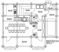 Dviaukštis rąstinis gyvenamasis namas - poilsinė su terasa, balkonu ir garine, populiariausias vienkiemio variantas. Nuostabiai tinka sklypui, esančiam mieste arba šalia miško. Bendrasis plotas - 135.9 kv.m., gyvenamasis plotas - 85.9 kv.m., patalpos suskirstytos į 5 kambarius, mansardiniame aukšte įrengti 4 erdvūs miegamieji kambariai, o balkonas suteikia galimybę mėgautis panoraminiais vaizdais. Dėl kainų ar išsamesnės informacijos apie projektą galite teirautis arba siųsti užklausą žemiau nurodytais tel.nr. arba el. paštu.