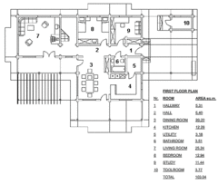 240,12 kv .m. poilsio namas ,skirtas 6 asmenų šeimai.