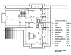 240,12 kv .m. septynių kambarių erdvus poilsio namas su sporto sale, skirtas 6 asmenų šeimai.