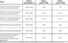 | 200 g/m2, 18/18 kN/m tempimo stiprio neaustinė geotekstilė | 5,40 x 100,0 | 0,64 | 2,21 | |||||||||||||||||