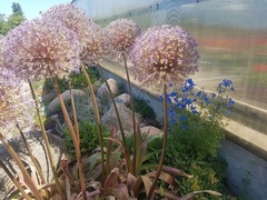 Nužydėję dekoratyviniai česnakai.