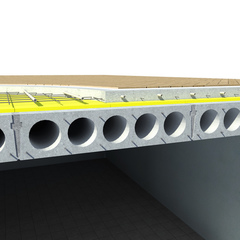 Šildomų grindų vamzdžiai klojami į armuoto betono sluoksnį virš termoizoliacinio sluoksnio, pagal grindinio šildymo tinklų montavimo instrukcijas.