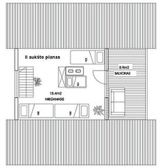 Patogaus išplanavimo, ekonomiškas rąstinis gyvenamasis namas - poilsinė su terasa ir balkonu. Puikus svečių namas šalia sodybos. Bendrasis plotas - 80.1 kv.m., gyvenamasis plotas - 58.2 kv.m., patalpos pirmajame aukšte suskirstytos į miegamajį ir poilsiui skirtus kambarius, mansardiniame aukšte - 18.4 kv.m. miegamoji erdvė. Dėl kainų ar išsamesnės informacijos apie projektą galite teirautis arba siųsti užklausą žemiau nurodytais tel.nr. arba el. paštu