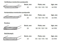 Storis, mm Plotis, mm Ilgis, mm 20 95 / 120 / 145 / 195 iki 5700