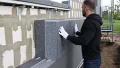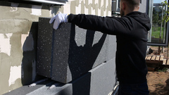 Klijuojančių putų naudojimas vietoj cementinio mišinio fasadų apšiltinimo darbams - greitesnis ir paprastesnis darbas.