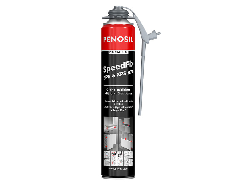 Klijuojančios putos PENOSIL Premium SpeedFix EPS&XPS 878 skirtos polistireninio putplasčio (XPS, EPS), OSB, MDP, MDF plokštėms klijuoti prie betono, tinko, keramikos, gipskartonio, kartono, medienos, akmens, metalo, PVC paviršių. Galima naudoti lauke ir viduje.