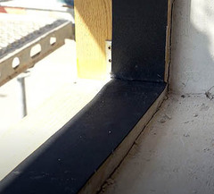 Netepa langų rėmų ir jungiamųjų paviršių.