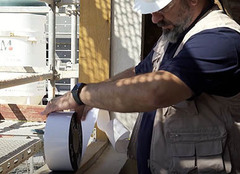 Medinių karkasų, plieninių konteinerių konstrukcijų sandūrų sandarinimas.
