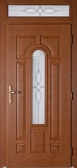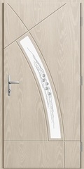 Kompozicinės lauko durys su stiklu, galima rinktis skaidrų, veidrodinį ar matinį stiklą, taip pat gali būti vitražais puošti stiklo paketo langeliai.