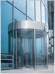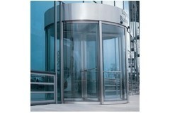 Stiklinis karuselinių durų stogas ir grindyse montuojamas karuselinių durų variklis suteikia architektams puikias galimybes formuoti maksimaliai skaidrius pastatų fasadus.