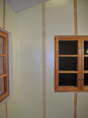 Prie lentjuosčių tvirtinamos vidaus apdailos plokštės (GKP ar kt.). Prieš tvirtinant apdailos plokštes visos skylės (elektros kabelių kanalai) ir visi tarpai tarp plokštės ir lubų bei grindų užsandarinami. Geras sandarumas yra dalis konstrukcijos energetinio efektyvumo.