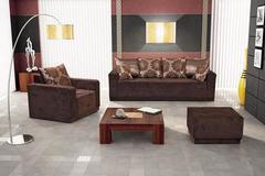 | Minkštas komplektas Carmen | Komplektas - sofa lova, fotelis ir pufas - minkštas. |