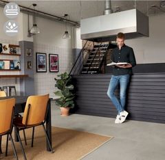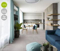 Kolekcija Tiles atvaizduoja natūralias plyteles, čia rasite šviesaus ir lengvo betono atspalvius, bei ryškias, tamsiai pilkas kieto betono imitacijos plyteles. Vinilinė grindų danga "Vivafloors" - VS1710 , betono imitacijos plytelės itin mėgiamos loftų interjeruose.