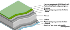 Kad skardinė stogo danga atlaikytų didelius karščio ir šalčio smūgius, UV spindulių, drėgmės poveikį, ji apsaugoma storesniu ar plonesniu polimerinės dangos ir cinko sluoksniu. Nuo šių apsauginių sluoksnių priklauso skardinės stogo dangos kokybė, atsparumas ir ilgaamžiškumas. Polimerinio sluoksnio storis matuojamas mikronais, cinko sluoksnio storis - gramais kvadratiniame metre. Net kelių mikronų skirtumas turi didelę reikšmę skardos ir skardinio stogo kokybei.