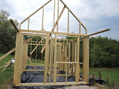 Vienas iš sudėtingiausių karkaso dalių yra šlaitinis stogas. Mes supjauname medieną tiksliai ir stogo surinkimas nesudaro jokių problemų.