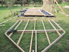 Kalibruota ir sausa mediena išpjaunama CNC staklėmis. Kiekvienas jungimas turi nedidelę įpjovą kas supaprastina darbus. Surinkti karkasinį namą gali net žemos kvalifikacijos meistras. Darbus pagreitins viniakalė. Surenkamos namo sienos, kurias belik spakelti, išlygiuoti ir sujungti.