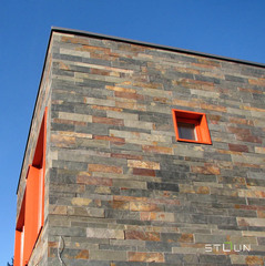 Vienos populiariausių akmens rūšių, naudojamų fasadų apdailai Lietuvoje, tai - skalūnas, kvarcitas bei kalkakmenis, tačiau klientai vis dažniau ieško išskirtinimo ir renkasi pvz. bazaltą (lavos plyteles). Siekiant sukurti kuo unikalesnį vaizdą, derinamos skirtingų matmenų bei storių natūralaus akmens plytelės, taip pat skirtingos akmens rūšys ar jų apdirbimas.