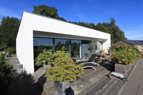 Tokį namą mes pastatėme mūsų klientui Danijoje. Šis namas yra ekonomiškos stačiakampio formos, patalpų aukštis namo viduje neviršija 2,50 m. Jis orientuotas į pietinę pusę, kurioje sumontuoti vitrininiai langai. Dėl specialių stiklų ir langų konstrukcijos net karštą vasaros dieną saulės spinduliai neįkaitina namo vidaus, o žiemą, kai saulė pakyla žemiau, į namo vidų patenka šviesa ir pakankamas šilumos kiekis. Tokius langus Lietuvoje siūlo langų gamintojas Doletos langai.