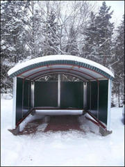 Mini angarai pagaminti iš surenkamų konstrukcijų, dengti plienine Arcelor Mittal 0,56mm profiliuota danga ir surenkami ant plieninio rėmo.