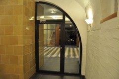 Priešgaisrinės durys su ugniai atspariu viršduriu.