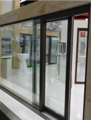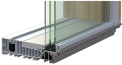 Durų konstrukcija sujungia medį ir aliuminį, todėl iš vidaus langai atrodo šilti ir jaukūs, o iš išorės durys yra atsparios įvairiems oro sąlygoms. Mediena vidinėje pusėje suteikia elegancijos ir jaukumo, tuo pačiu išlaikant šiuolaikinį, patvarų aliuminio paviršių išorėje. Frezuota stumdoma varčia leidžia tiksliai įstatyti stiklą, be papildomų stiklajuosčių vidinėje pusėje, kas dar labiau padidina estetinį vaizdą.