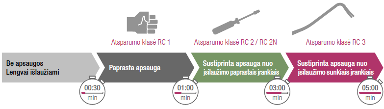 Į 80 % būstų įsilaužiama per lengvai atidaromus langus ir duris. Net trečdaliui įsibrovėlių tai nepavyksta dėl sustiprintų apsaugos priemonių. Apsaugokite savo namus, sustiprindami lengvai prieinamus langus ir duris. Jei įsilaužėliui nepavyksta atidaryti lango per kelias sekundes, jis ieško kito, lengviau įveikiamo objekto.
