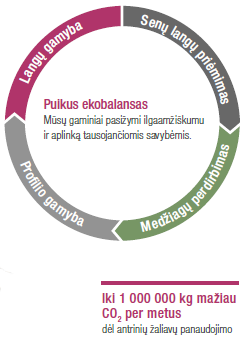 Mes stebime medžiagų ir energijos panaudojimą viso gamybos proceso metu. Vadovaudamiesi perdirbimo koncepcija, priimame senus naudotus langus jų perdirbimui. Gauta žaliava pilnai apdorojama ir paruošta vėl grąžinama į gamybos procesą - neprarandant kokybės. Gamybos proceso metu taikydami daugybę įvairių priemonių mažiname energijos sunaudojimą. Mažas išteklių suvartojimas yra geriausias būdas saugoti aplinką.