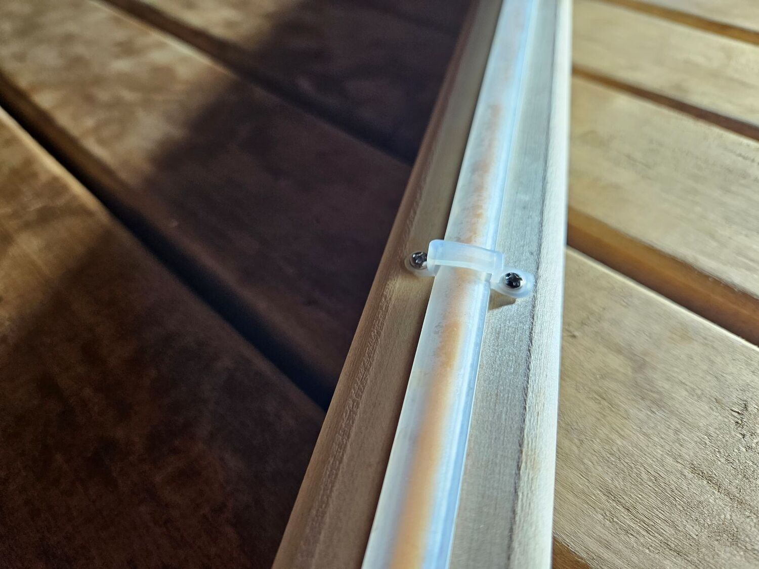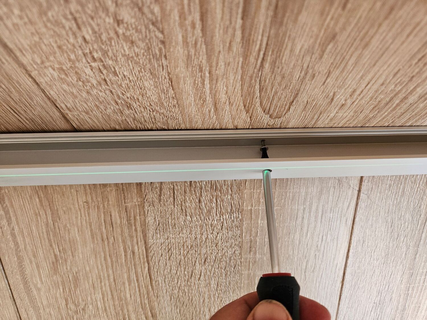 LED profilis dažniausiai tvirtinamas dvipusio lipnumo juosta ir papildomai prisukamas varžteliais