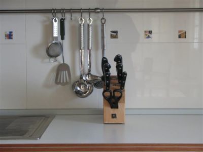 Žinoma, svarbu ir gerų peilių rinkinys. Labai džiaugiuosi, kad jie - ne stalčiuje, o specialiame stove. Kiekvienas turi savo vietą ir taip nepasimeta. Išlaikyti visą komplektą būtų neįmanoma. Bent jau žirklių tai tikrai kaskart tektų eiti ieškoti. Tie, kas turi daug vaikų, žino, kaip greitai namuose kai kurie daiktai „išsivaikšto". O dabar - jei tik peilį ar žirkles išsineši - iš karto būsi susektas", - pasakojo ji.