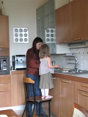 Jei jums susidarė įspūdis, kad Agnė su malonumu leidžia laiką virtuvėje - klystate. „Virtuvė - tik maistui gaminti vieta ir ne daugiau. Ir nė karto čia gamindama nepajaučiau jokio pasitenkinimo. Man maisto ruoša susijusi su vaikais. Gaminu tik jiems. Mano patiekaliukai buitiški, paprastučiai - virtinukai, kotletukaiai, blynukai. Vaikiški patiekalai, kurių vyrai dažniausiai nevertina. Jie nori maisto, pagaminto su polėkiu, o jo pritrūksta, kol kiekvienam vaikui pagamini jo užsakymą. Kaskart ilgai derinu norus ir kartais pavyksta „išsisukti" su vienu bendru patiekalu visiems trims", - su šypsena kalbėjo Agnė.