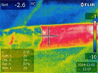 Viršutinė perdanga taip pat labai nevienodai sulaiko šilumą. Kai kur dėl plonesnio izoliacinio sluoksnio atsiranda didesnis šilumos praradimas.