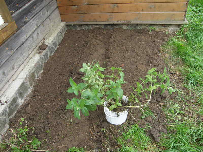 Sodinimo darbai pradedami gegužės pirmoje pusėje, naudojant 8–10 centimetrų ilgio šaknines atžalas. Tai patikimiausias būdas išlaikyti visas veislines augalo savybes, nes sėklos yra itin smulkios, sėjamos tik įspaudžiant į žemę ir dygsta 15–20 dienų. Sodinant išlaikomas 60 centimetrų atstumas tarp eilių bei 25–28 centimetrų tarpas tarp pačių augalų. Tokiu būdu vienam hektarui užsodinti prireikia nuo 60 iki 70 tūkstančių daigų. Vos augalams prigijus, jie papildomai tręšiami azoto trąšomis (80 kg/ha), o vėliau sezono metu kelis kartus ravimi ir purenami tarpueiliai. Nuėmus pirmąjį derlių, laukas vėl patręšiamas mineralinėmis trąšomis. Antraisiais ir trečiaisiais metais tręšimo normos išlieka tokios pačios, tačiau papildomai tenka šalinti į tarpueilius besibraunančias atžalas.