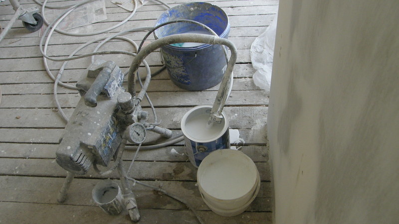 Paėmimo žarną įstačius į dažų talpą, slėgis pakeliamas iki numatomo naudoti. Įjungus aparatą purkštuvo galva pirmiausia nukreipiama į laisvą talpą iki kol pradės purkšti dažai.