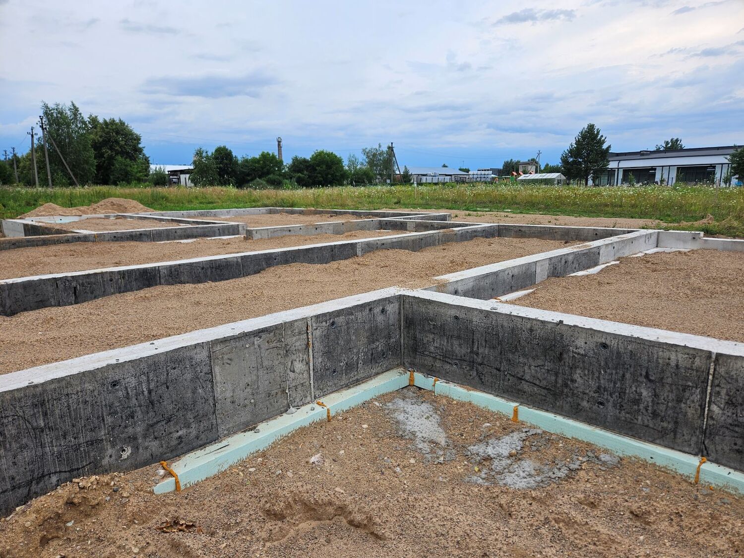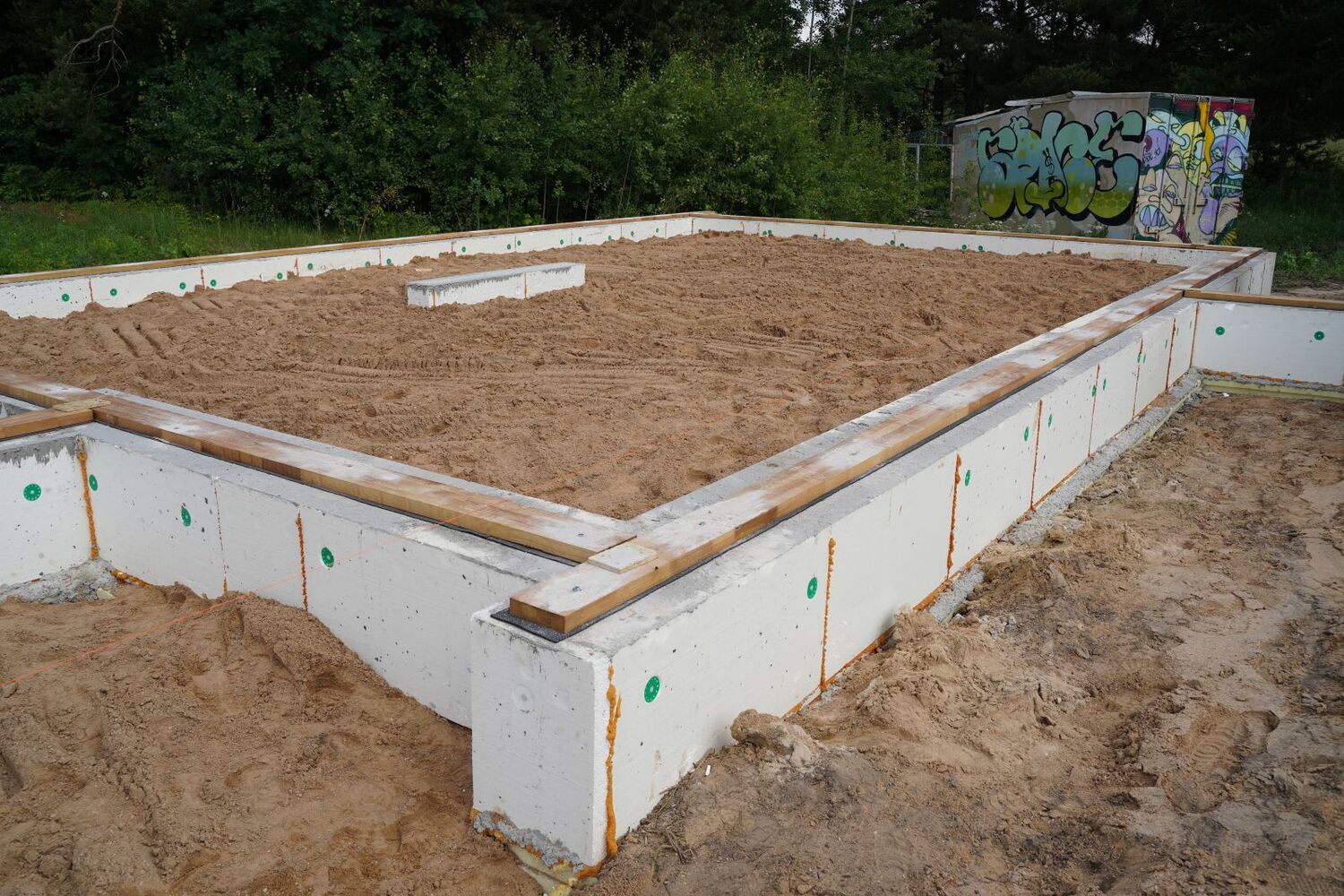 Dabar dažniausiai įrengiami juostiniai pamatai, rečiau plokštuminiai. Juostiniams pamatams dažnai naudojami betoniniai blokeliai, montuojami ant pamatų pagalvės. Blokeliai armuojami ir užpilami betonu. Sukietėjus betonui, pamatai iš išorės ir vidaus šiltinami polistireniniu putplasčiu.