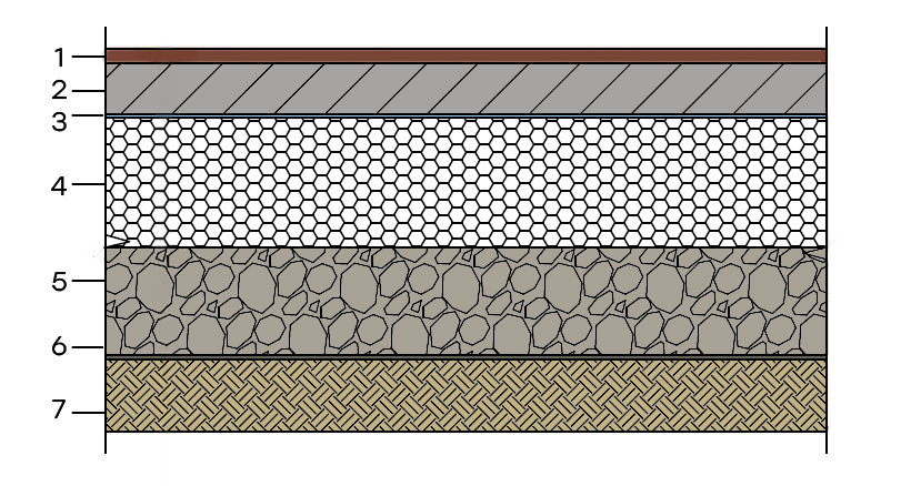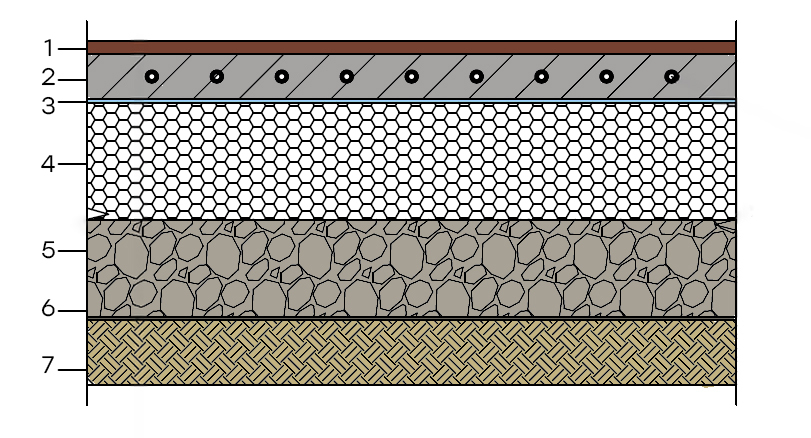 7. Išlyginta ir sutankinta skalda arba žvyras > 150 mm