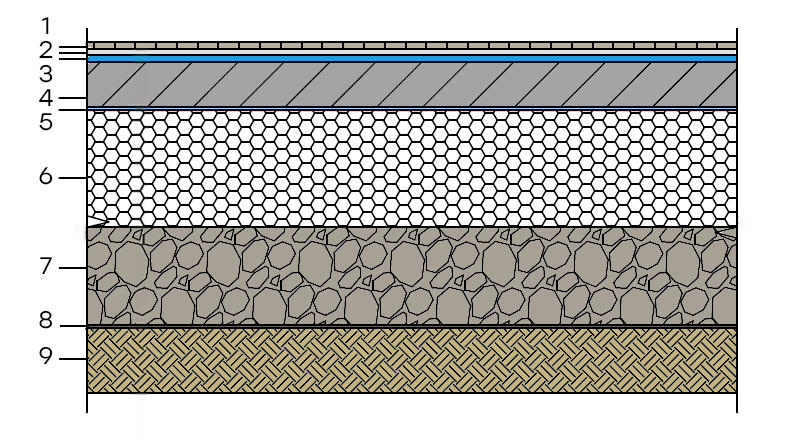 Pagrindinis reikalavimas tokiai sistemai – lygus ir stabilus pagrindas. Jeigu smėlio ar žvyro sluoksnis nėra tiksliai išlygintas, plokštės ar dangos gali deformuotis. Praktikoje dažnai įrengiamas plonas išlyginamasis smėlbetonio sluoksnis be armatūros, kuris suformuoja stabilų pagrindą, o tik po to montuojama šilumos izoliacija ir sausoji grindų konstrukcija.